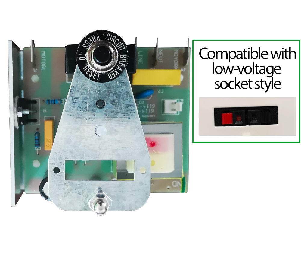 OVO central vacuum PC Board. Low-voltage socket must have the style show in the picture. ( Black and red button on top of the holes)