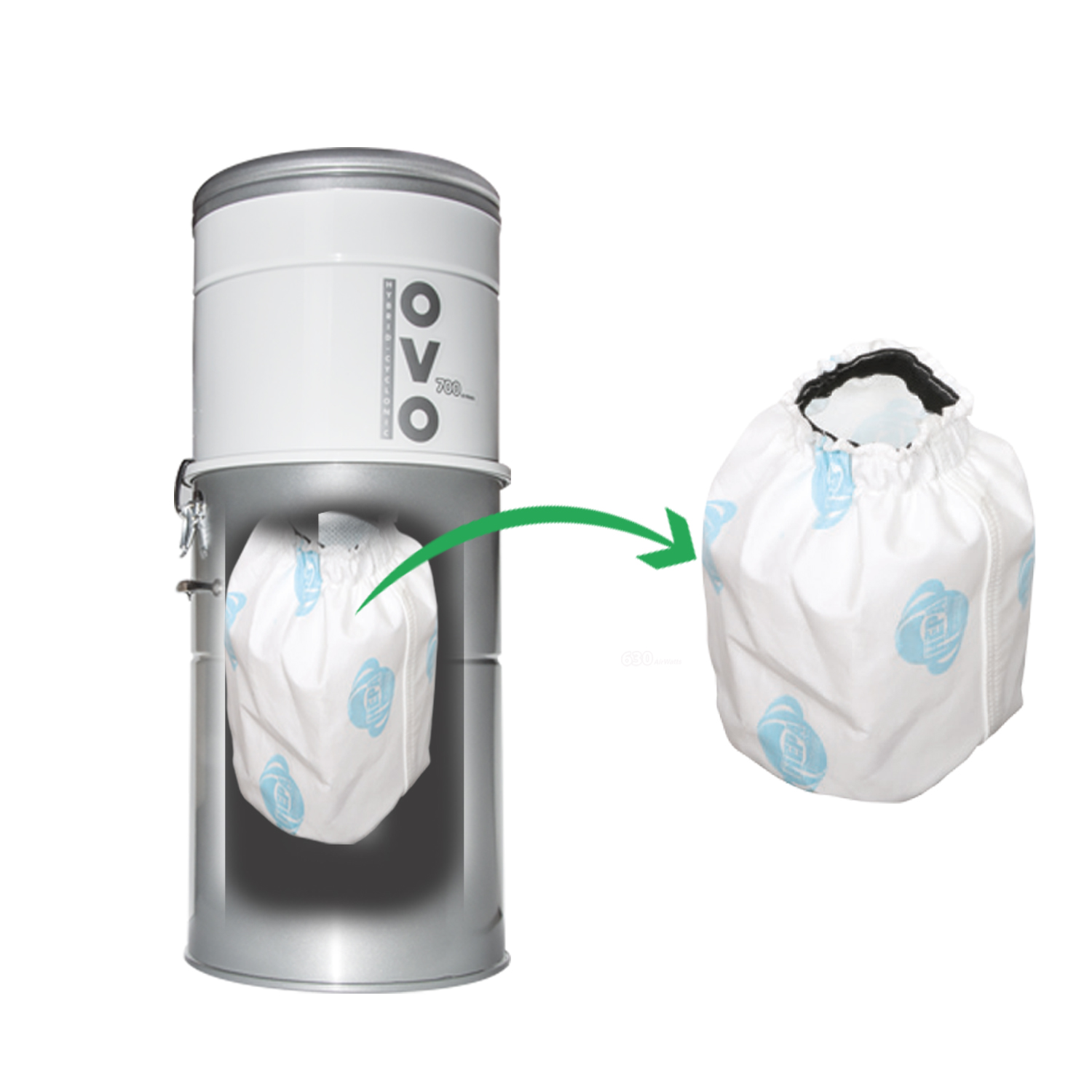 OVO 700 Airwatts, Hybrid Central Vacuum System, 35L / 9.25 Gal. Bottom Load Canister, 140” H2O Suction Power, Covers up to 8 000 sq. ft (743.1 sq. m) + 35 ft (10.7 m) Turbo Brush Kit – Ideal for Hard Surfaces and Area Rugs